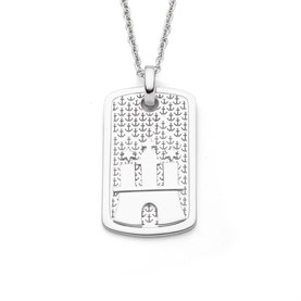 Flacher, rechteckiger Anhänger Ankerplatz mit gelaserten, schwarz oxidierten Anker-Icons, aus 925er Sterling-Silber.
