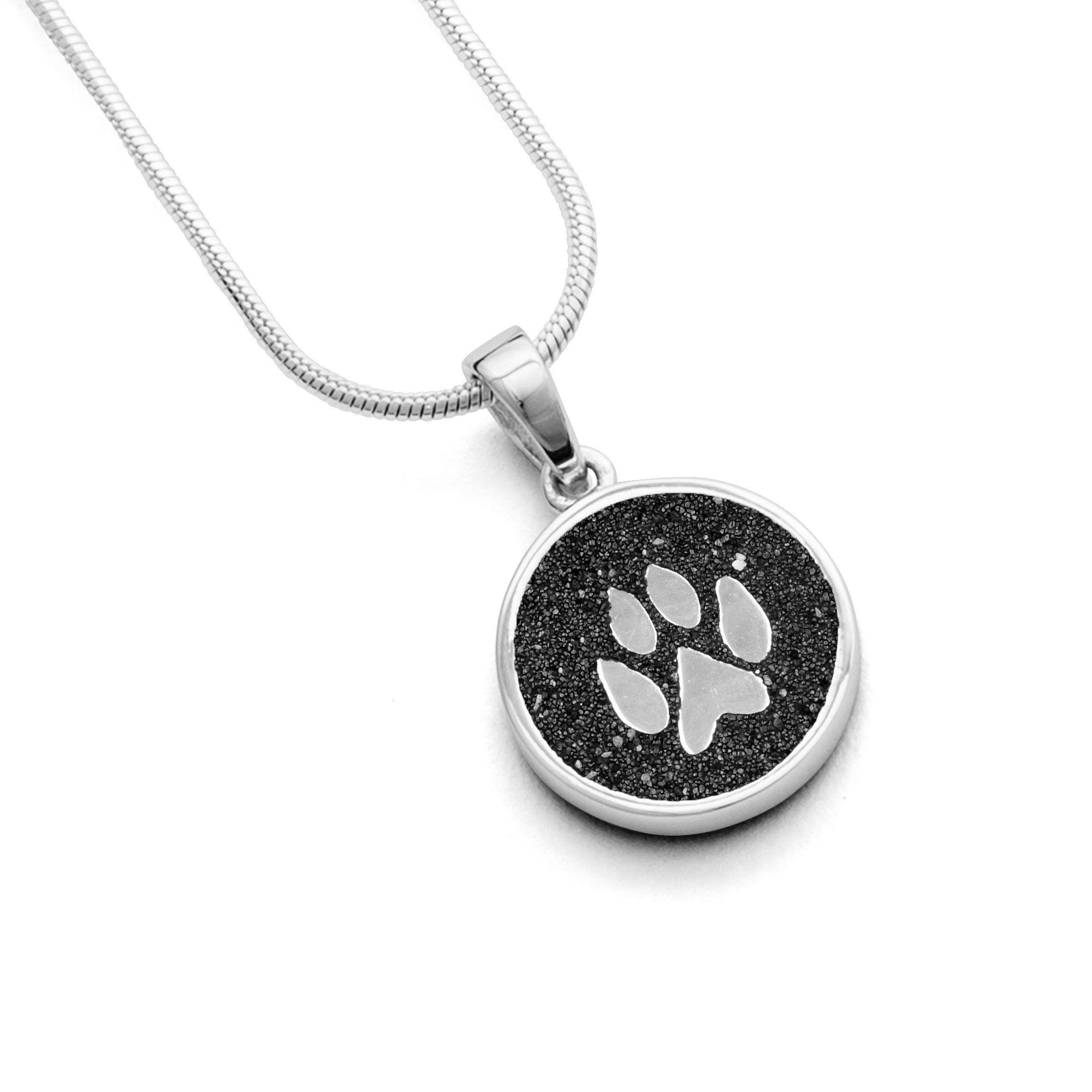 Bandring "Sandkatze" mit Katzentatzen, Wollknäuel und Maus eingearbeitet in Lavasand und gefasst in poliertem und rhodiniertem 925er Sterling-Silber