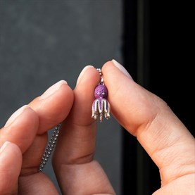 Echte Sehnsucht: Anhänger in Form eines Oktopus, gefüllt mit Korallengranulat, alles aus poliertem und rhodiniertem 925er Sterling-Silber