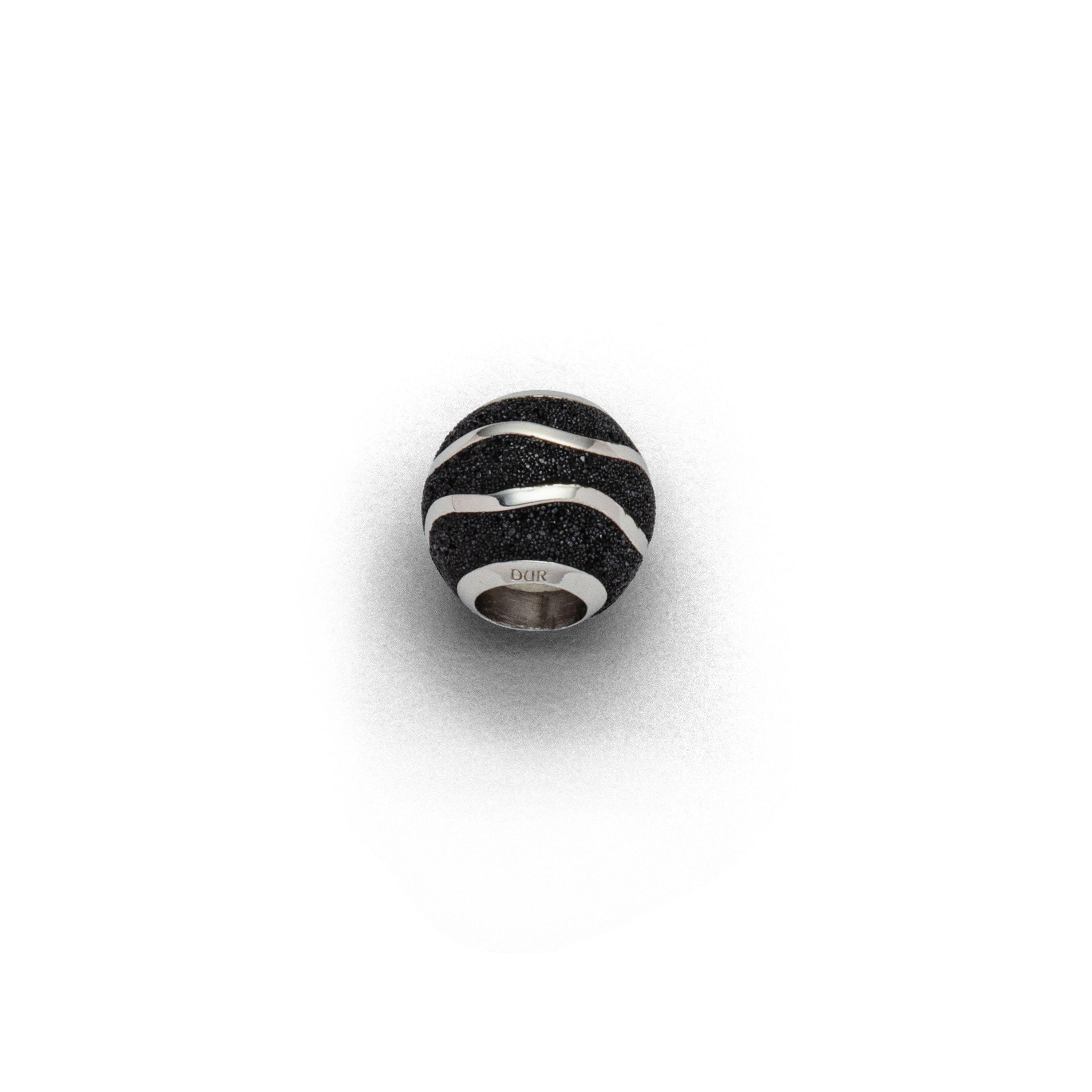 Strandsandkugel mit 2 silbernen Wellen, eingebettet in Strandsand, gefaßt in rhodinierten 925er Sterling-Silber