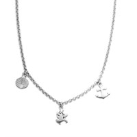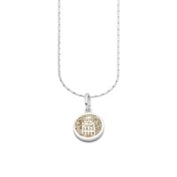 Strandring "Waren (Müritz)" 7 mm, mit dem Motiven: St. Marienkirche, Dampfschiff Europa, Brunnen (Neuer Markt), Müritz-Silhouette, Brunnen (Schiffspropeller), Rathaus eingebettet in Strandsand und gefasst in rhodiniertem 925er Sterling-Silber.