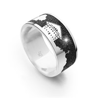 Nachtring "Wesermarsch" R5570 Nachtring "Wesermarsch" mit den silbernen Motiven: Storch, Braker Telegraph, Oberfeuer, Gorch Fock, Leuchtturm, Wikinger Statue, Wasserturm, eingebettet in Lavasand und gefasst in rhodiniertem 925er Sterling-Silber.