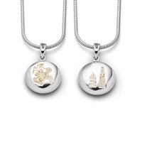 Bernsteinring "Mönchgut" mit den silbernen Motiven: Das Mönchgut Tor-Trachtenpaar-Inselsilhouette-Fische-Windmühle-Kite-Surfer, eingebettet in Bernsteinsand und gefasst in rhodiniertem 925er Sterling-Silber.