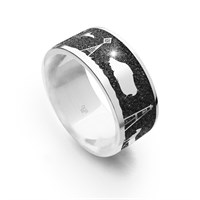 Ring "Hiddensee" R5198 Ring "Hiddensee", mit der Inselsilhouette, eingebettet in Lavasand, gefaßt in rhodiniertem 925er Sterlingsilber.