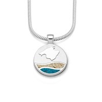 Lederarmband "Ahoi" "Søndervig", schwarz, 58 cm lang, mit einem runden Schiebeelement, Motiv: "-Leuchtturm-Möwe-", gefüllt mit Strandsand, gefaßt in rhodiniertem 925er Sterlingsilber