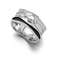 Steinsandring "Norden", mit den Motiven: Ostfriesisches Teemuseum, Seehund, Deichmühle, Lutdgerikirche, Schöningsche Haus, Möwe, Dree Sisters, eingebettet in blauem Steinsand, gefasst in rhodiniertem 925er Sterling-Silber.