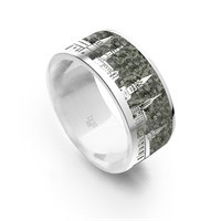 Nachtring "Den Helder" R5614 Nachtring "Den Helder" mit den silbernen Motiven: Leuchtturm, Fisch, Tulpe, Kriegsmarineschiff, Anker, eingebettet in Lavasand und gefasst in rhodiniertem 925er Sterling-Silber.