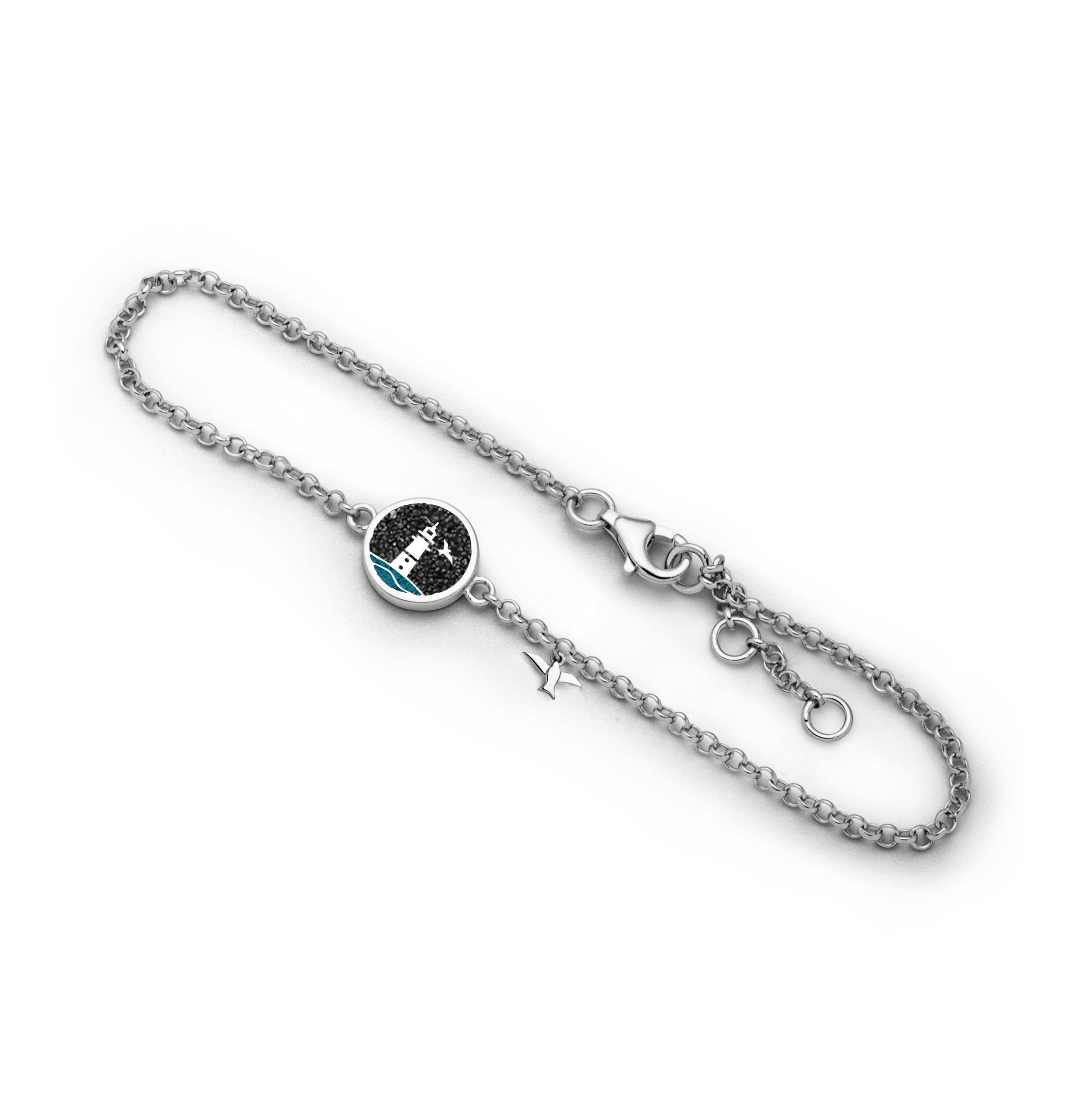 Unser feingliedriges Armband ist die perfekte Begleitung für Ihren Alltag! Das Armband verfügt über eine Länge von 16,5 cm plus zwei mögliche Verlängerungen von jeweils 1 cm. In der Mitte des Armbands befindet sich das Highlight - das runde Emblem gefüllt mit der einzigartigen Küstenlandschaft. Das runde Emblem ist aus edlem 925er Sterlingsilber gearbeitet. Dieses ist rhodiniert und somit anlaufgeschützt. Während das untere Drittel des Emblems gefüllt ist mit naturbelassen rauem Strandsand, erstreckt sich auf den oberen zwei Dritteln ein feines Geflecht aus geschwungenen Silberlinien. Zahlreiche Wellen scheinen sich seicht am Strand zu brechen. Die wellenförmigen Silberlinien sind poliert und grenzen sich damit stilvoll vom Strandsand aber auch von der matten Unterfläche ab. Das Emblem hat eine Breite von 10 mm. Mit einem Gewicht von 3 Gramm ist unser Armband der perfekte Begleiter durch Ihren Alltag!