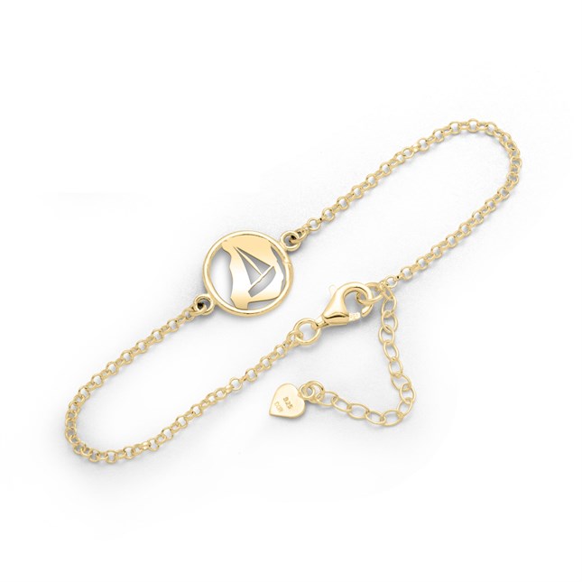 Feines Erbsarmband "Bad Zwichenahn", mit der Silhouette vom Zwischenahner Meer und ausgespartem Segelboot als Mittelteil, ca. 16 cm lang plus 4 cm Verlängerung, aus vergoldetem 925er Sterling-Silber