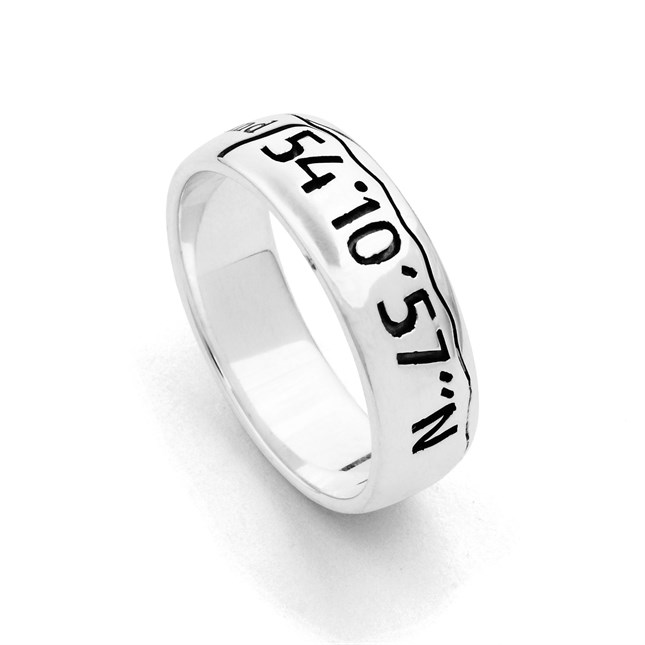 Bandring mit den Koordinaten von Helgoland aus 925er Sterling-Silber.