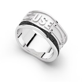 Ring Strandwellen "Usedom" in Bandform, mit den 3 Motiven:-USE-Silhouette von Usedom-DOM, eine Welle ausgefüllt mit Lavasand die anderen innen leicht mattiert, aus rhodiniertem 925er Sterling-Silber. Durch die Rhodinierung ist das Schmuckstück anlaufgeschützt.