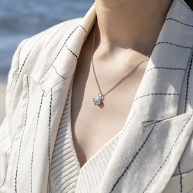 Echte Sehnsucht: Feine Erbskette rhodiniert mit einem Anhänger in Form eines Fisches, gefüllt mit blauem Kyanitsteinsand, alles aus poliertem und rhodiniertem 925er Sterling-Silber, ca. 45 cm lang. Durch die Rhodinierung ist das Schmuckstück anlaufgeschützt.