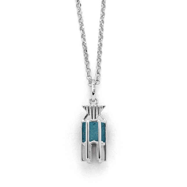 Echte Sehnsucht: Feine Erbskette rhodiniert mit einem Anhänger in Form der Kap Norderney Bake, teilweise gefüllt mit Strandsand, alles aus poliertem und rhodiniertem 925er Sterling-Silber, ca. 45 cm lang. Durch die Rhodinierung ist das Schmuckstück anlaufgeschützt.