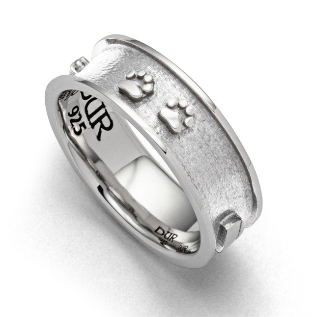 Runder Ohrstecker "Lucky Dog" gefüllt mit Lava-Sand und einer Hundepfote aus Silber, gefasst in rhodiniertem 925er Sterling-Silber
