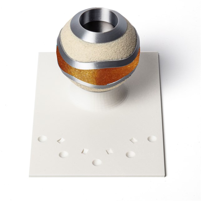 Display, weiß, für Schaufenster oder Vitrine, ideal zur Präsentation von Beads und Charms für Sammelarmbänder, mit 5 runden Einkerbungen zur sicheren Platzierung von Beads und 5 eckigen Einkerbungen für Charms, sowie einem integrierten Sockel mit großem Strandwellen Bead mit 2 silbernen Wellen, im Wechsel eingebettet in Strandsand und Bernsteinsand, Maße: 170x120x5mm. Gefertigt aus Polylactid (PLA), einem biobasierten Kunststoff, welcher aus nachwachsenden Rohstoffen wie Maisstärke oder Zuckerrohr besteht und biologisch abbaubar ist.