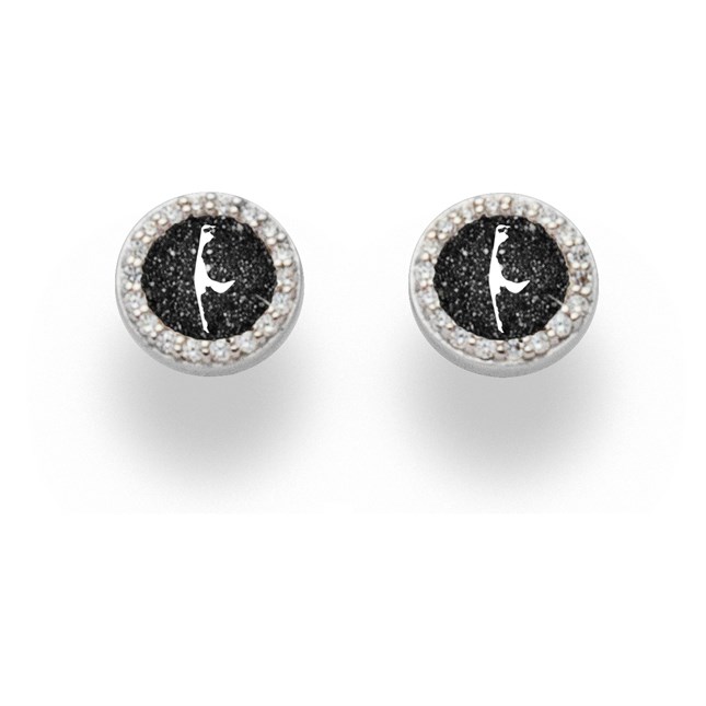 Runder Ohrring "Sylt", mit der Silhouette von Sylt als Motiv, gefüllt mit Lavasand und umrahmt von 36 kleinen Zirkoniasteinen, gefasst in rhodiniertem 925er Sterling-Silber. Durch die Rhodinierung ist das Schmuckstück anlaufgeschützt.