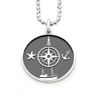 Anhänger "Cuxhaven" P3865 Kleiner runder Anhänger "Cuxhaven" mit dem Cuxhavener Leuchtturm, innen dunkel rhodiniert, aus rhodiniertem 925er Sterlingsilber.